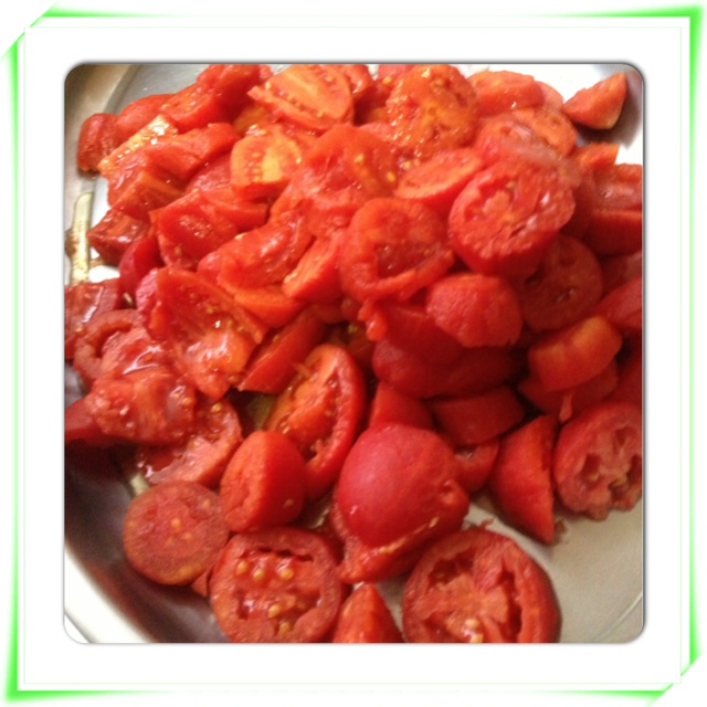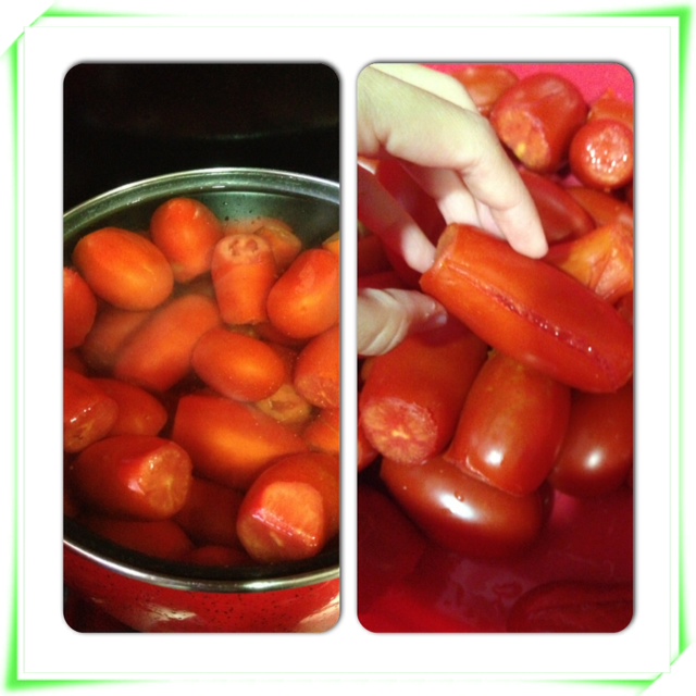 4.- Peel all the tomatoes and piece them.