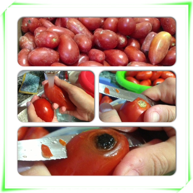 1.- lava bien los tomates con agua fría o templada. Quítales el extremo y cualquier golpecito que pueda llevar.