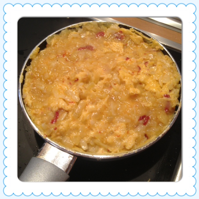 – empieza a practicar con mini sartenes, esta tortilla que yo he elaborado la he hecho con una pequeñita y no veas lo fácil que resulta!