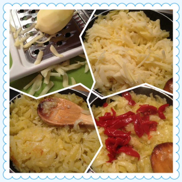 1.- rayar la patata, cuanta? a mi me gusta llenar la sartén, asi que calcula al ojo, no te preocupes. Rerserva.