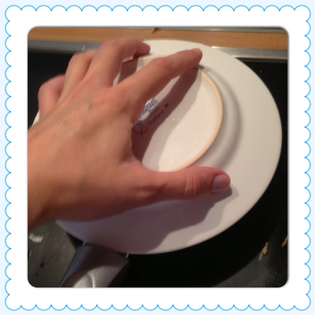 8.- con la tortilla en el plato, solo tienes que poco a poco con pequeños movimientos ir dejánadola y posándola en orden otra vez en la sarten. De manera que la cara cuajada quede ahora arriba y la no cuajada en la base. Cuando la pongas ayúdate de una cuchara de palo para dar forma especialmente a los cantos.