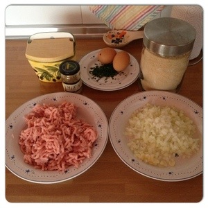 2. – Mix in a bowl: beef, salt, pepper and parsley, fried, some bread crumbs and eggs.