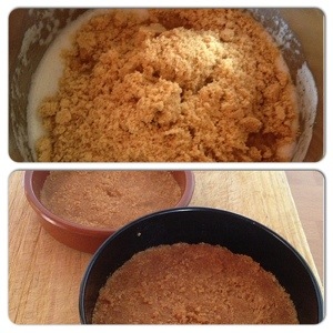 1.- Melt the butter and crush the biscuit. Unit both and if you get too much liquid mix, add more biscuits.