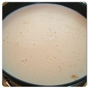 3.- Boil 2 (only) milk´s glasses and the Liquid cream two. Add sugar to taste. Try the flavor.
