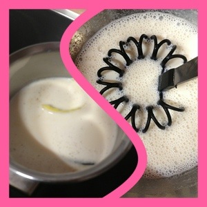 3.- retira la leche del fuego y reposa. Añádela al Bol también.