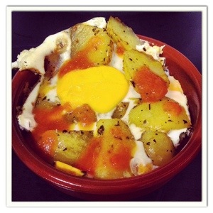 When almost done, remove the tray, open the eggs over the potatoes and introduces you to cook, as long as it takes but don´t let it dry all . Better if the egg is in point.