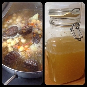 No hace falta que hagas un cocido en un mismo día, puedes hacer el primer paso por ejemplo una noche, y el siguiente, que es colar etc… por la mañana o mediodía (yo es así como lo hago normalmente). Y recordad, esta es mi manera, existen infinitas!