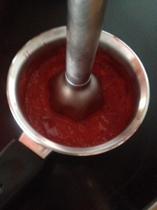 2.- cuando estén blandas y derretidas, pasa la batidora, y después para dejarla suave y sin pepitas etc., pasa por un «chino» o similar.