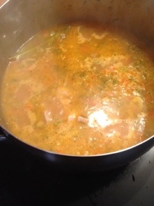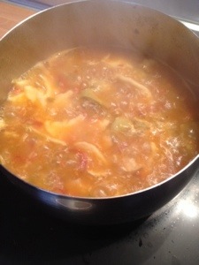 Cuando añadas todas las que creas, a los 2 minutos, ve rompiéndolas con ayuda de dos cucharas, y deja cocer poco a poco 10 minutos mas lentamente pero dejando que burbujee.