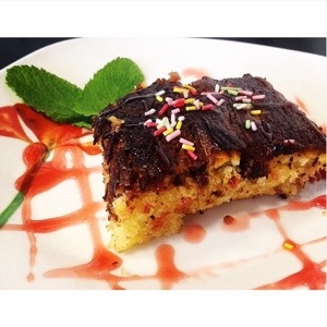 Se sirve caliente (sin que queme) o templándolo si lo has tenido en el frigo antes, en el microondas. Acompaña con algo frio, helado, salsa de natillas etc……