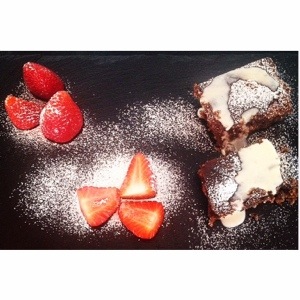 El Brownie, la estrella de los postres, especialmente acompañada de una salsa de natillas fría,….espectacular!! Sin duda uno de mis postres preferidos, aunque por el momento, la tarta de queso se lleva la palma 😉