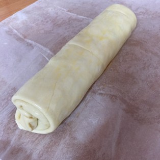 6.- doblar los lados y empezar a enrollar la masa con el relleno hasta el final.