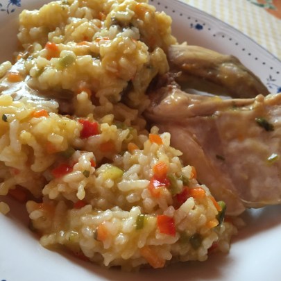 – Conejo, ya sea medio, o en trozos, cantidad al gusto sin llenar la cacerola que tb esta el arroz😉