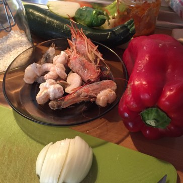 - gambones grandes, o langostinos frescos (no cocidos)